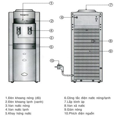 Máy lọc nước 2 vòi nóng lạnh Kangaroo có cấu tạo như thế nào